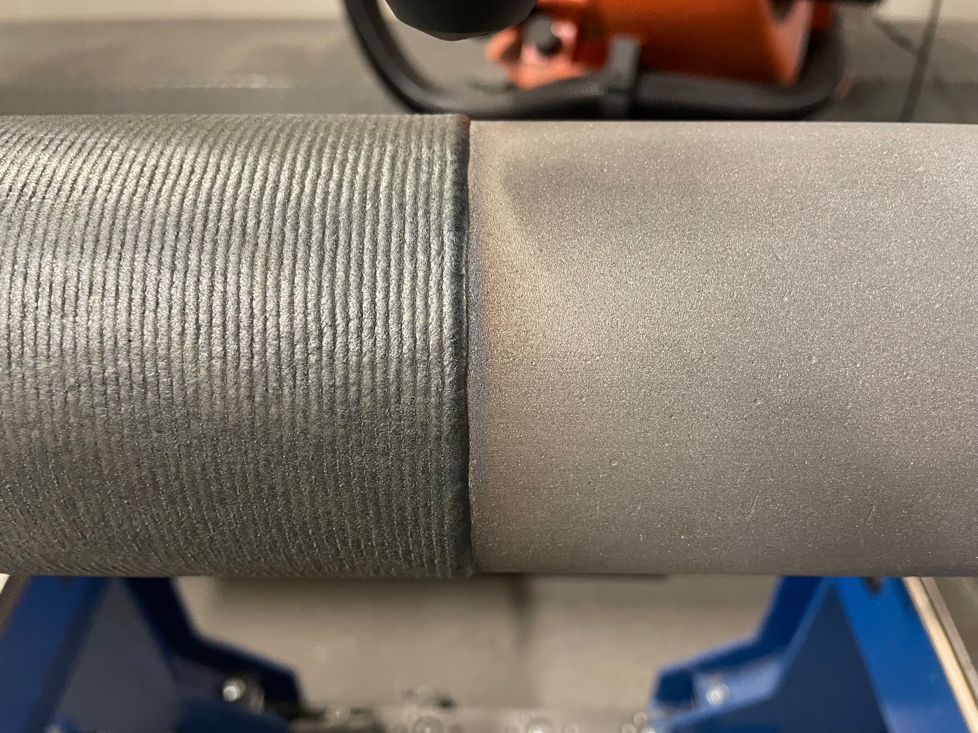 Rußbläserrohr mit LaserCladding. Im Unterschied zu anderen Verfahren werden Rußbläserrohre beim LaserCladding erst nach dem Einschweißen der Düsen beschichtet.