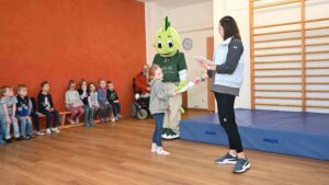 31. März 2023 – In dieser Woche besuchte Jolinchen gleich zweimal Kindertagesstätten in Voerde. Zum sechsten Mal erhielten Kinder des Evangelischen Familienzentrums Rönskenhof in Voerde, Kooperationspartner des TV Voerde, das