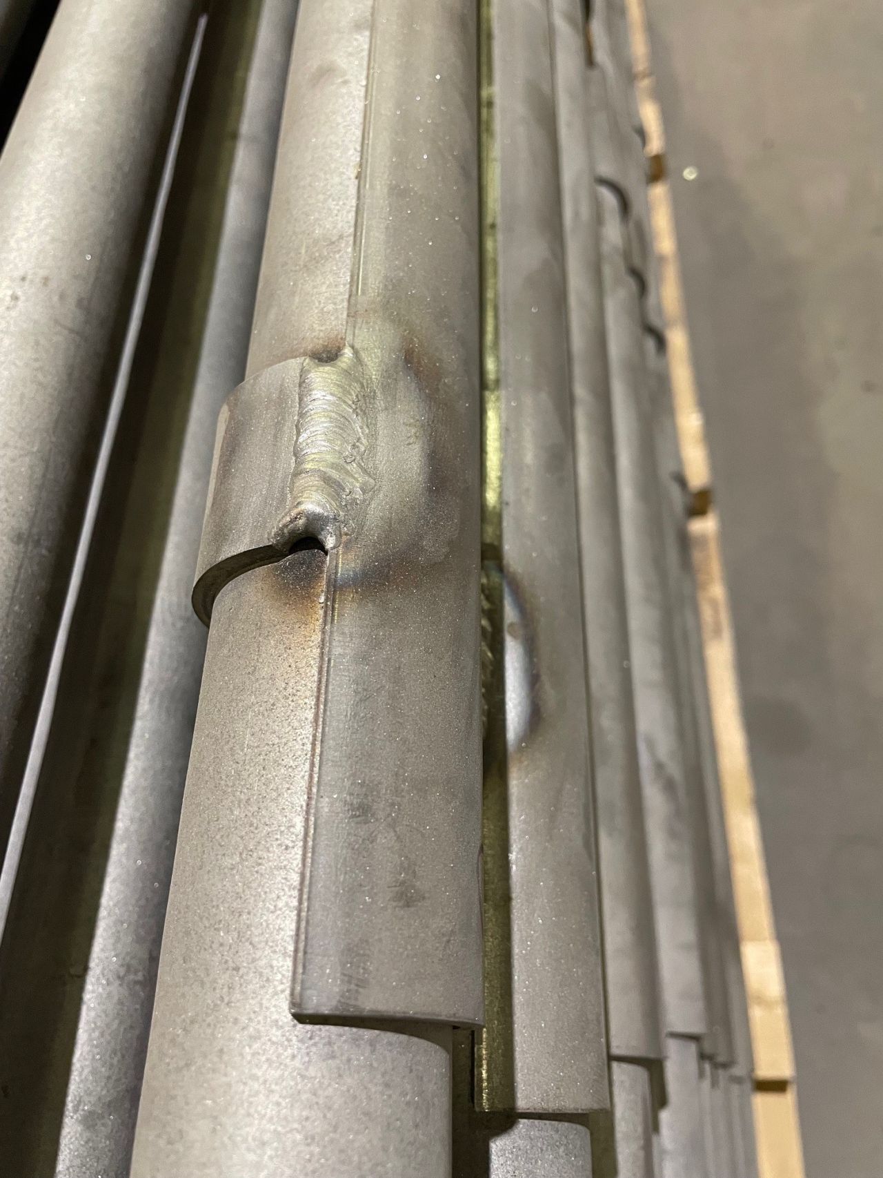 Das interessanteste Detail ist jedoch nicht sichtbar: in Zusammenarbeit mit dem Kunden haben wir die Beschichtung in jedem Bereich der Flachschlange für das Belastungsprofil angepasst: die vorderen Rohrreihen haben eine besonders abrasionsstabile Nickel-Basis-Legierung, die hinteren – weniger belasteten Reihen hingegen eine reduzierte Schichtdicke. Auch die vorderen Bogenbereiche sind speziell geschützt.